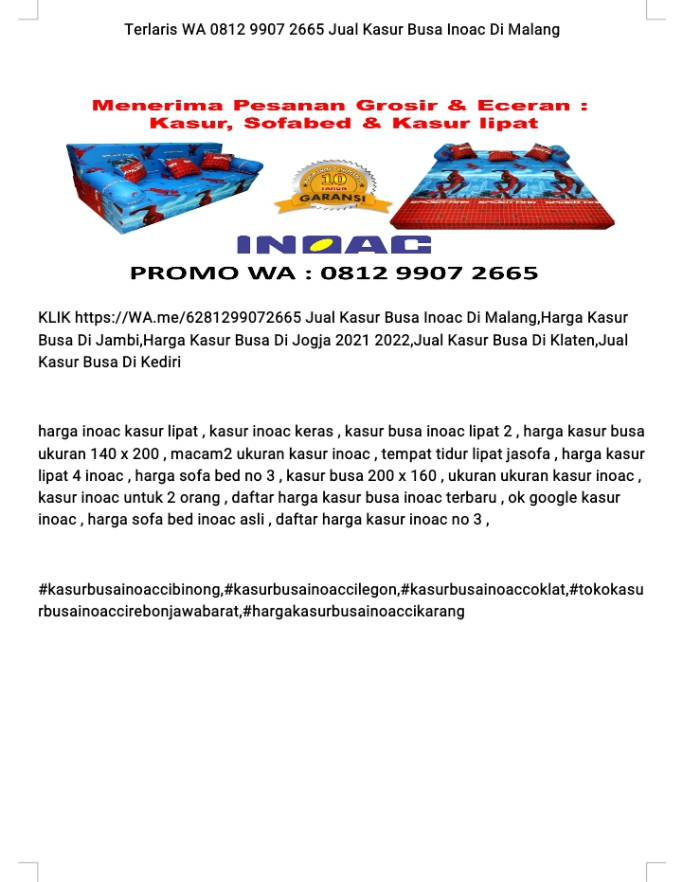 Harga kasur inoac jakarta tangerang, kami distributor produk inoac menjual berbagai macam ukuran kasur busa serta aksesoris untuk keperluan tidur mulai dari bantal cinta silahkan pesan dan bisa cek daftar harga kasur lipat inoac, daftar harga sofa bed inoac, daftar harga sofa lipat inoac disini. Berikut daftar lengkap harga kasur inoac asli di. Daftar harga sofa bed inoac. Info lengkap mengenai harga kasur inoac, sofa bed. Harga kasur inoac 2021, sofa bed inoac dan kasur lipat inoac ukuran no 1, no 2,3,4,5 tebal 40, 30, 25,20,10.